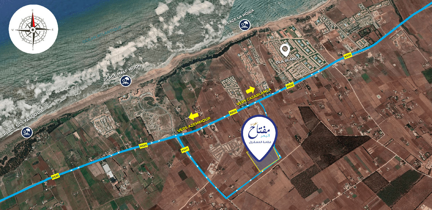مفتاح البحر مشروع ساحلي يتميز بموقعه الإستتنائي على بُعد 5 دقائق من شاطئ سيدي رحال وبالقرب من جميع وسائل الراحة الضرورية للحياة اليومية. يضم المشروع 48 محلاً تجارياً مصمم بعناية فائقة، مما يتيح لك الفرصة لتحقيق طموحاتك التجارية في قلب هذه المنطقة الساحلية