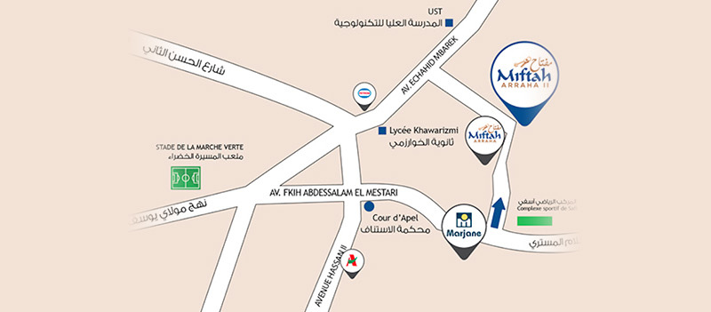 Après le franc succès de « Miftah Arraha » le Groupe Miftah Immobilier vous présente son nouveau projet "Miftah Arraha 2". Un concept de vie à SAFI avec encore plus d’avantages.
