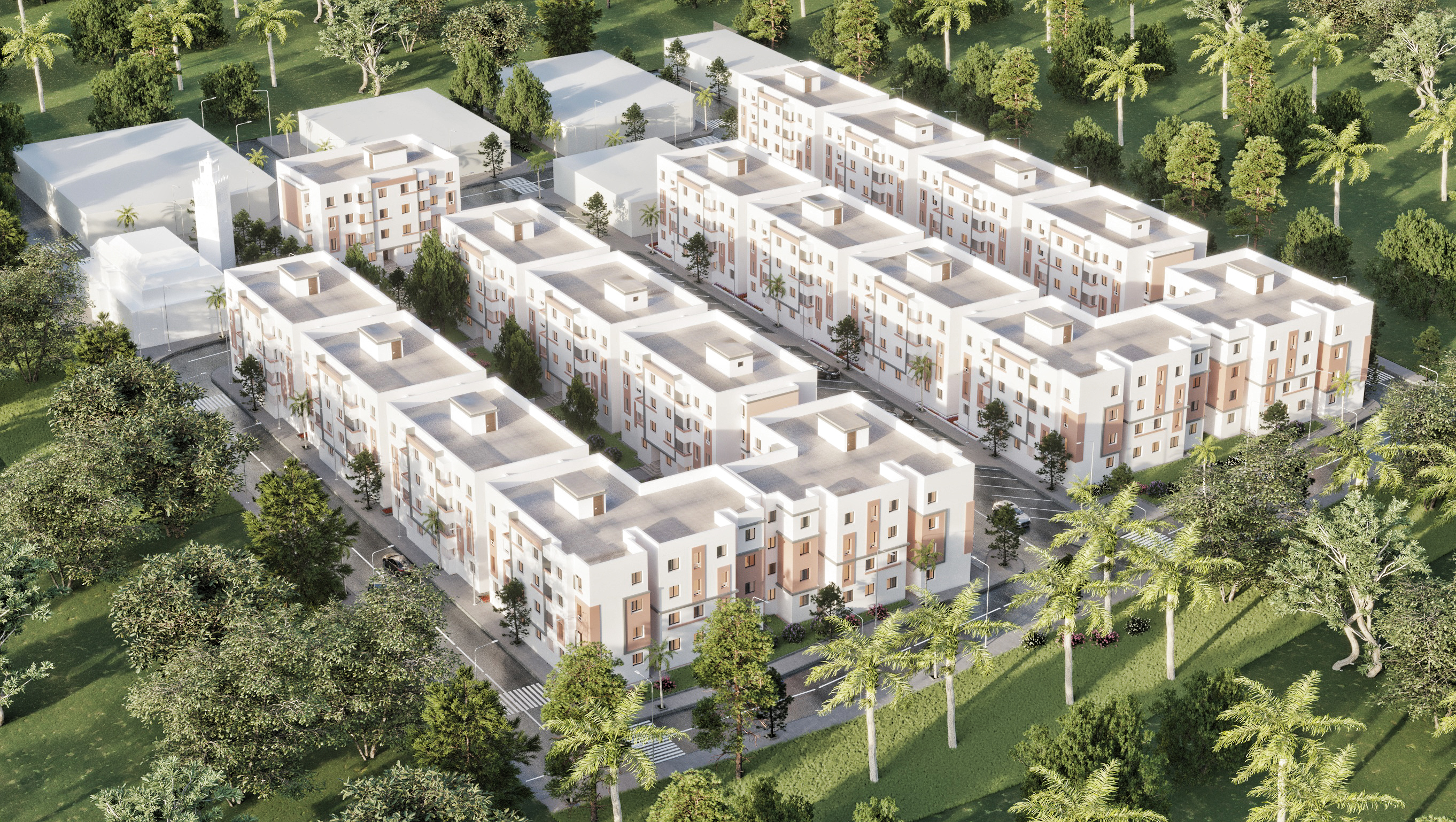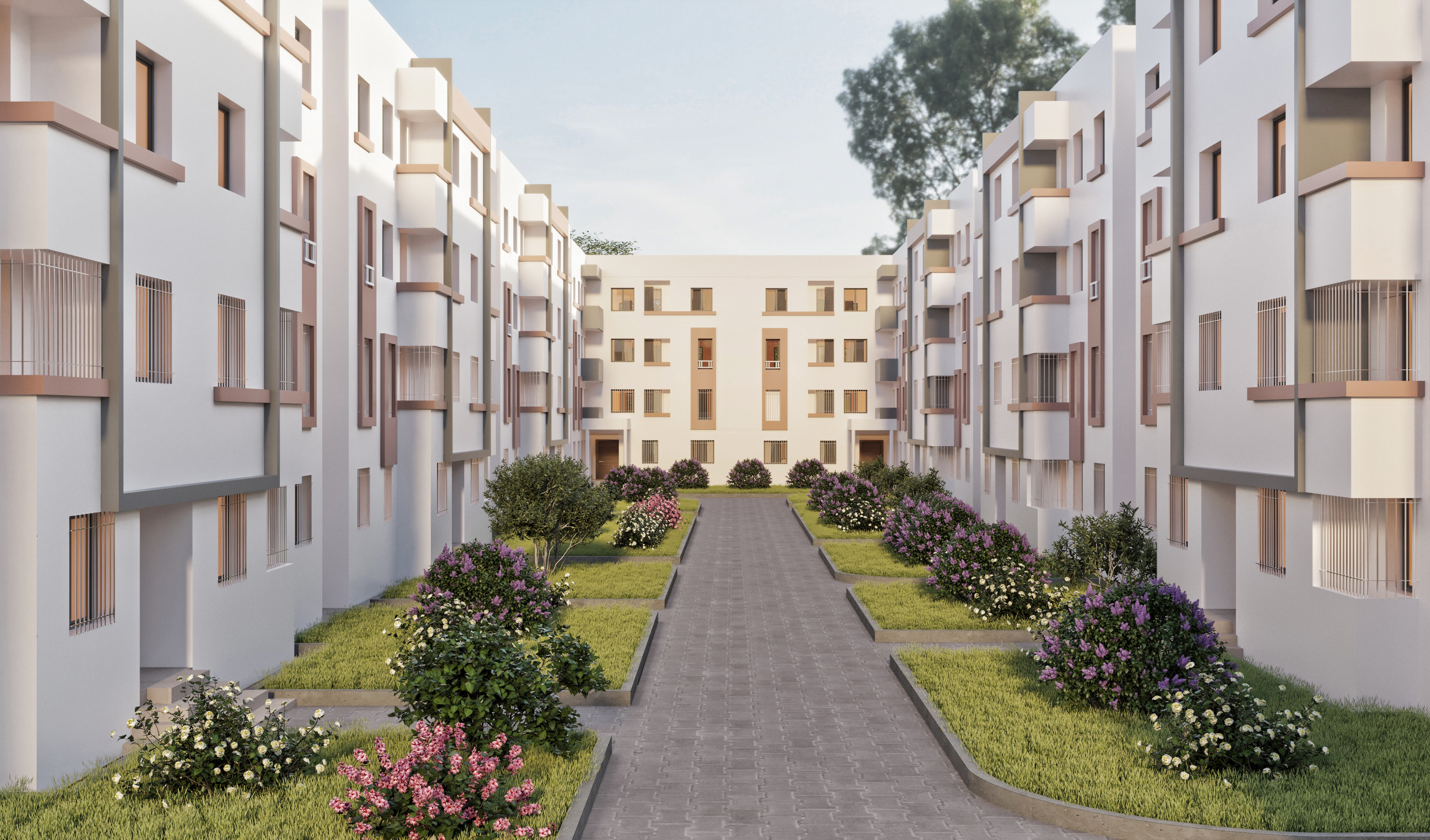 Miftah Arraha 5 est un projet composé d'appartements de 3 chambres en R+3 et se distingue par une approche architecturale moderne et épurée, privilégiant des espaces verts soigneusement aménagés et intégrant divers équipements tels qu'une mosquée, un poste de police et un centre commercial.